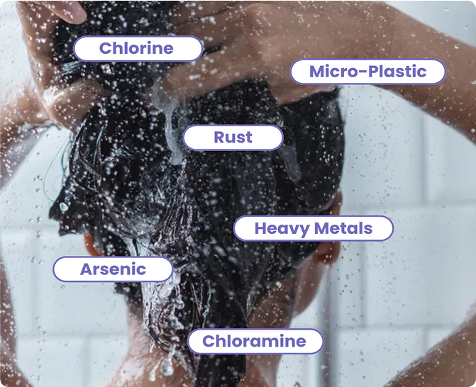 Unfiltered water often contain chlorine and heavy metals that disrupt skin balance, leading to dryness, breakouts, and early aging.